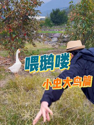 红柿树下,大鹅嘎嘎~# 平凡是生命的底色 # 喂鹅 # 董事长的日常生活